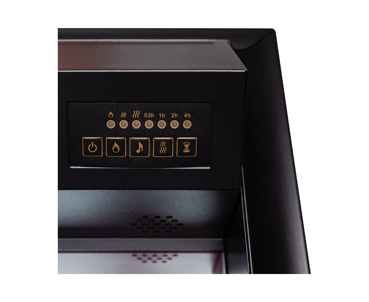 Электрический очаг Fobos Lux предназначен для встраивания в стандартные обрамления. В качестве муляжа - сгоревшие дрова. Нагреватель с поддувом спрятан в козырьке очага и обеспечивает обогрев в холодную погоду. Переключатель позволяет включать на полную (1 500 Вт) или половинную (750 Вт) мощность. В режиме визуализации пламени потребление электроэнергии составляет 80 Вт (две свечеобразные лампы E14 мощностью 40W).