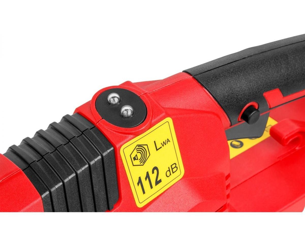 Прорезиненная рукоятка и тормоз безопасности делают использование инструмента максимально безопасным.
