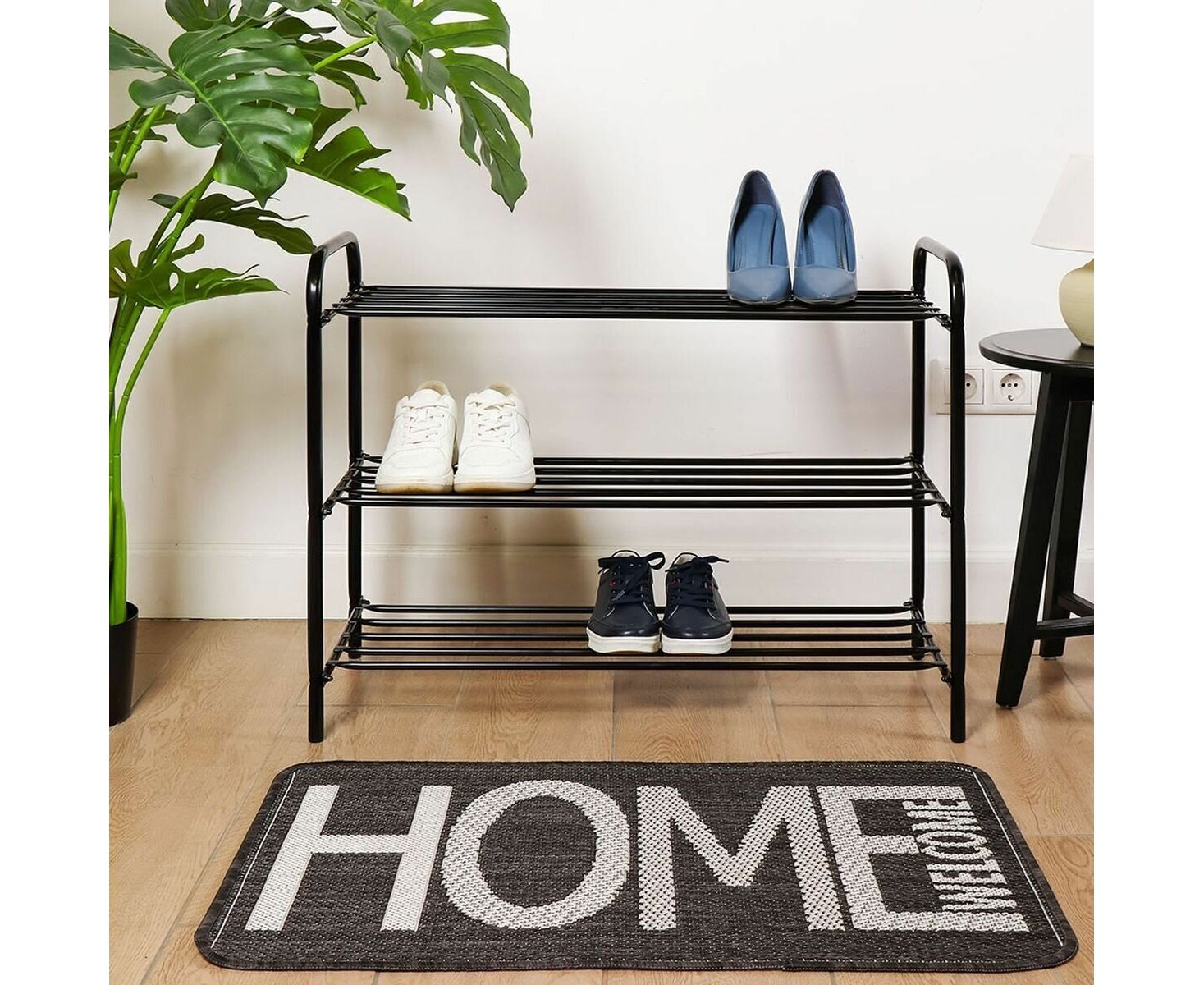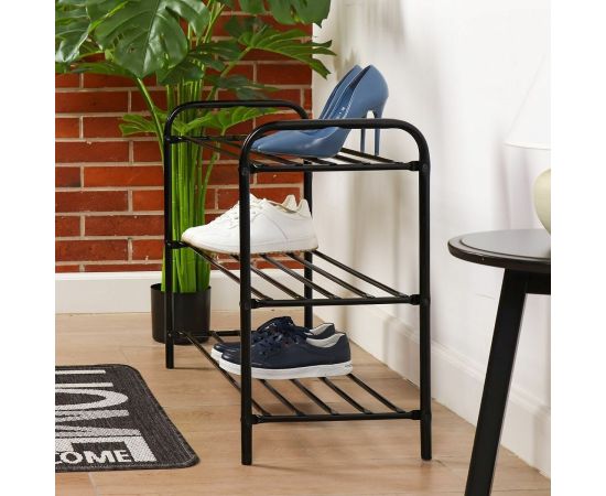 Этажерка для обуви Nika КОМФОРТ 3 полки черная ЭТК3 имеет металлический каркас и отличается износостойкостью