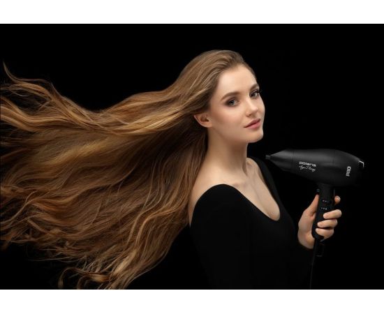 количество скоростей: 2; режимов: 3; насадок: 2шт; ионизация, концентратор; Мягкое, нескользящее покрытие корпуса Soft Touch; длина шнура: 3м; мощность: 2000Вт; цвет: черный