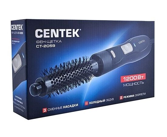 Фен-щетка Centek СТ-2059 (золото/черн) 1200 вт круглая щетка З насадки, 2 скорости. 2 температуры