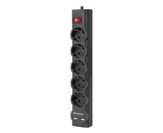 Сетевой фильтр DEFENDER DFS 753 3,0 м, 5 розеток, 2xUSB, 2.1A (99753)