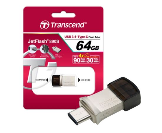 Флэш-драйв Transcend JetFlash 890, 64 Гб, OTG USB 3.1 gen.1 & USB Type-C