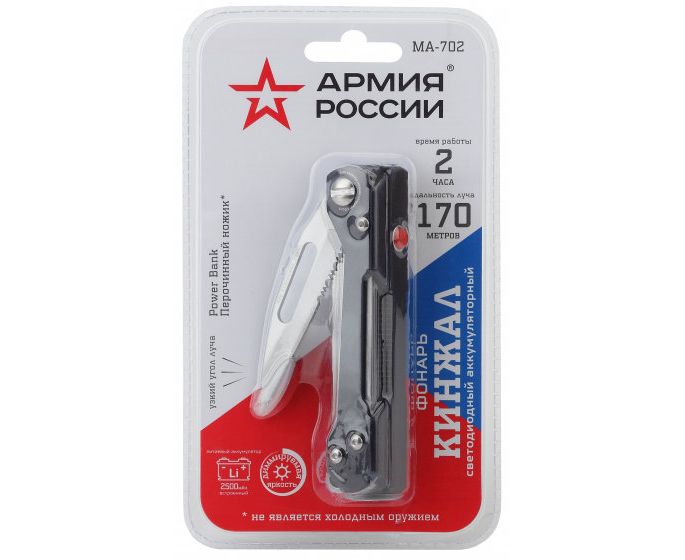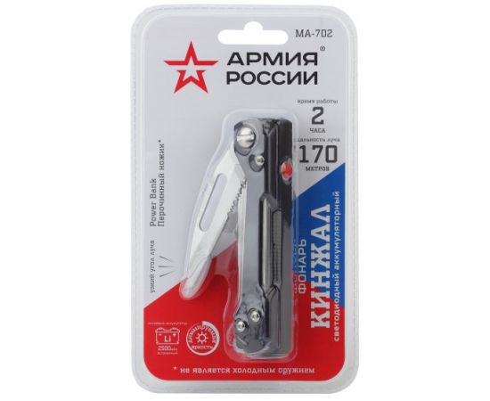Фонари Армия России MA-702 универсальный Кинжал [8Вт, алюм, диммер, нож, Li акк 2,5Ач.