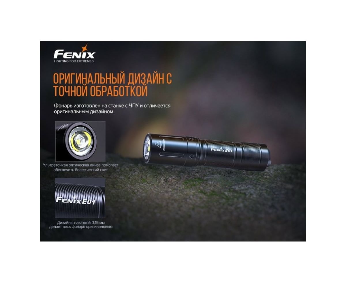 1.Фонарь Fenix E01 V2.0 черный e01v20bk - ультра компактный фонарь для ежедневного ношения.
