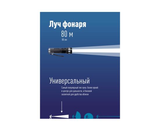 Луч фонаря светит вперед, направленный свет. Источник света: 1 Вт LED. Количество режимов: 1 (яркий).