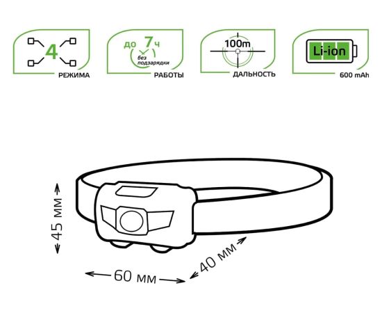 Особенности: Фонарь комплектуется качественным эластичным головным ремнем он обеспечивает надежную фиксацию и комфортное использование. Красный сигнал: сигнальный свет для чрезвычайных ситуаций или для подачи сигналов. Li-ion аккумулятор: ёмкая батарея обеспечивает длительное время автономной работы до 7 часов. Прочный корпус IP44: устойчив к пыли и брызгам, подходит для использования в любых условиях. Универсальность: идеально подходит для различных видов деятельности, таких как спорт, отдых, походы, гаражные работы и многое другое. Зарядка через micro USB: удобная и быстрая зарядка от любого устройства с USB-портом. Высокая дальность света 100 метров: освещает большие расстояния, дарит четкую видимость. 4 режима работы: выбирайте из различных режимов освещения, включая стробоскоп и SOS.