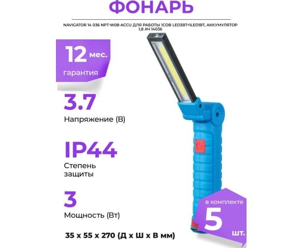 Фонарь Navigator NPT-W08-ACCU