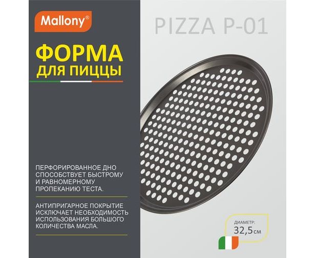 Дополнительные характеристики формы для пиццы Mallony PIZZA P-01 диам 32.5 см 008571: