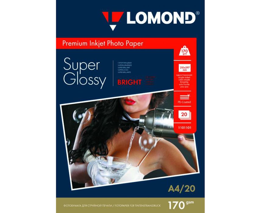Фотобумага Lomond 1101101 A4/170г/м2/20л./белый высокоглянцевое для струйной печати