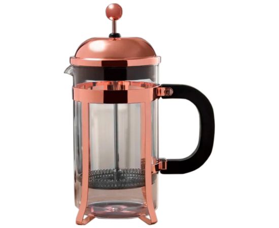 Френч-пресс изготовлен из стекла, пластика и высококачественной нержавеющей стали. Предназначен для приготовления кофе или чая, методом настаивания и отжима. Колба из боросиликатного стекла жароустойчива, выдерживает температуру 100°С, не впитывает запахи. Пресс-фильтр плотно прижимает частички кофе или заварки ко дну френч-пресса, а уплотнительное кольцо не дает им попасть в напиток. Прозрачный корпус позволяет наблюдать за процессом насыщения напитка. У френч-пресса удобная ручка, плотная закрывающаяся крышка.