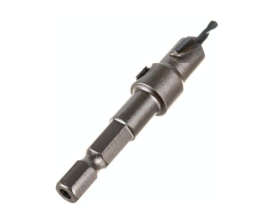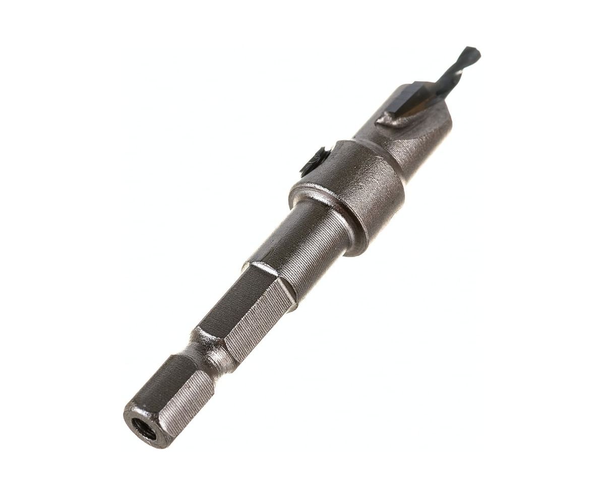 Оснащена сверлом и режущими ножами для эффективного сверления и фрезерования углублений и отверстий до нужного диаметра. Отлично высверливает отверстие под крепеж и одновременно с этим нарезает фаску под утапливание его головки в потай.