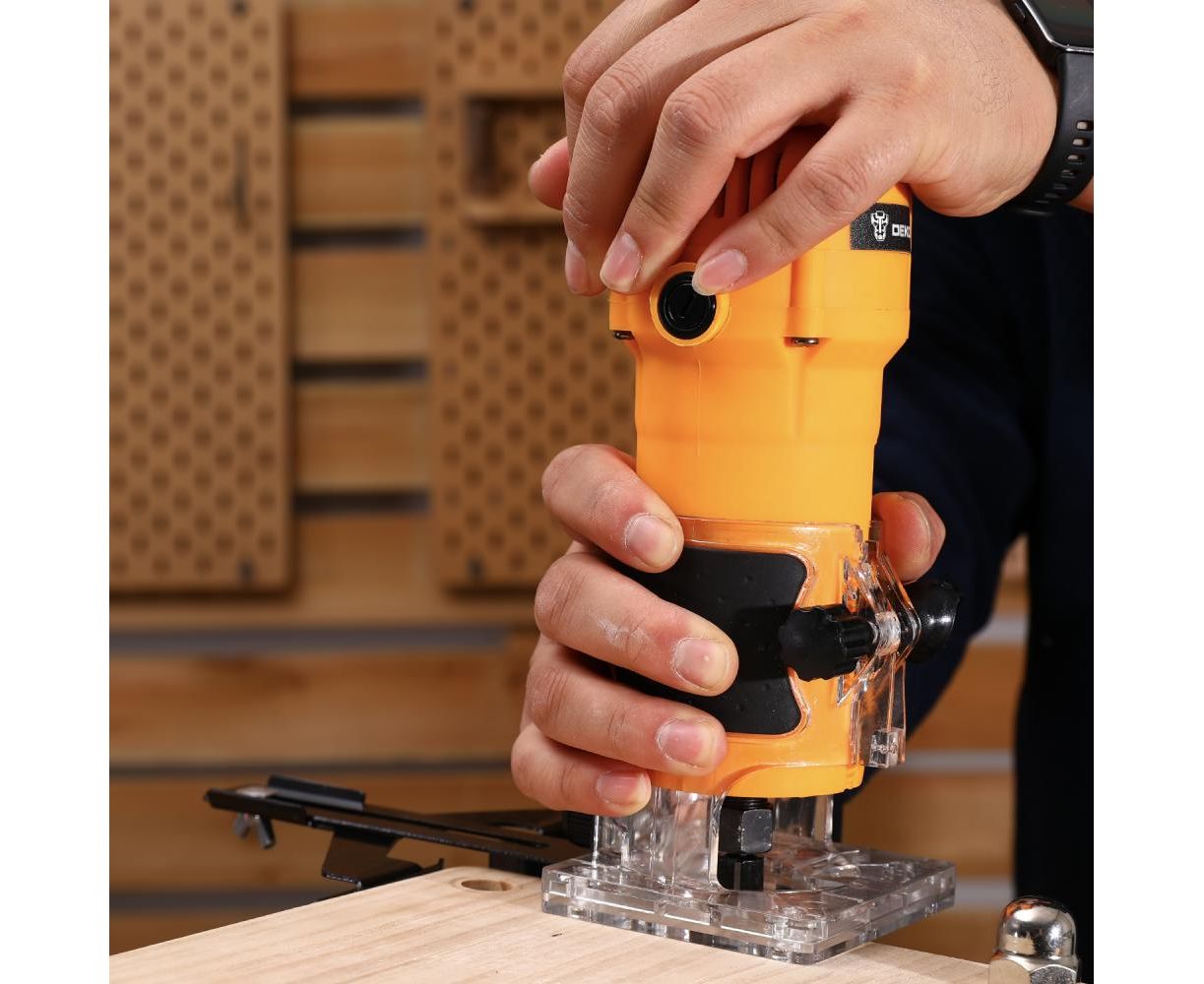 Фрезер электрический DEKO DKR850W с набором фрез применяется в различных столярных и плотницких работах для обработки кромок и профилей, фасок в деревянных конструкциях, для изготовления пазов и т.д.