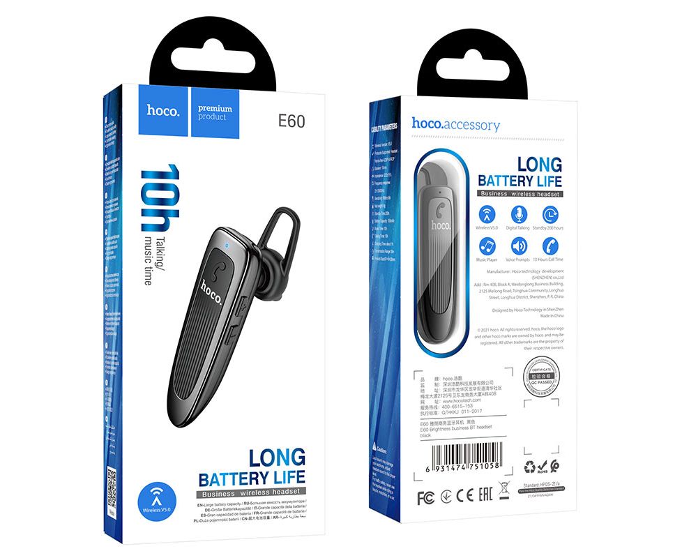 Гарнитура bluetooth HOCO E60 Brightness business (чёрный)