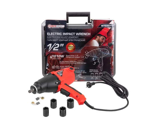 Гайковерт ударный электрический 1/2" 500 Нм в комплекте с головками от бренда FORCEKRAFT.