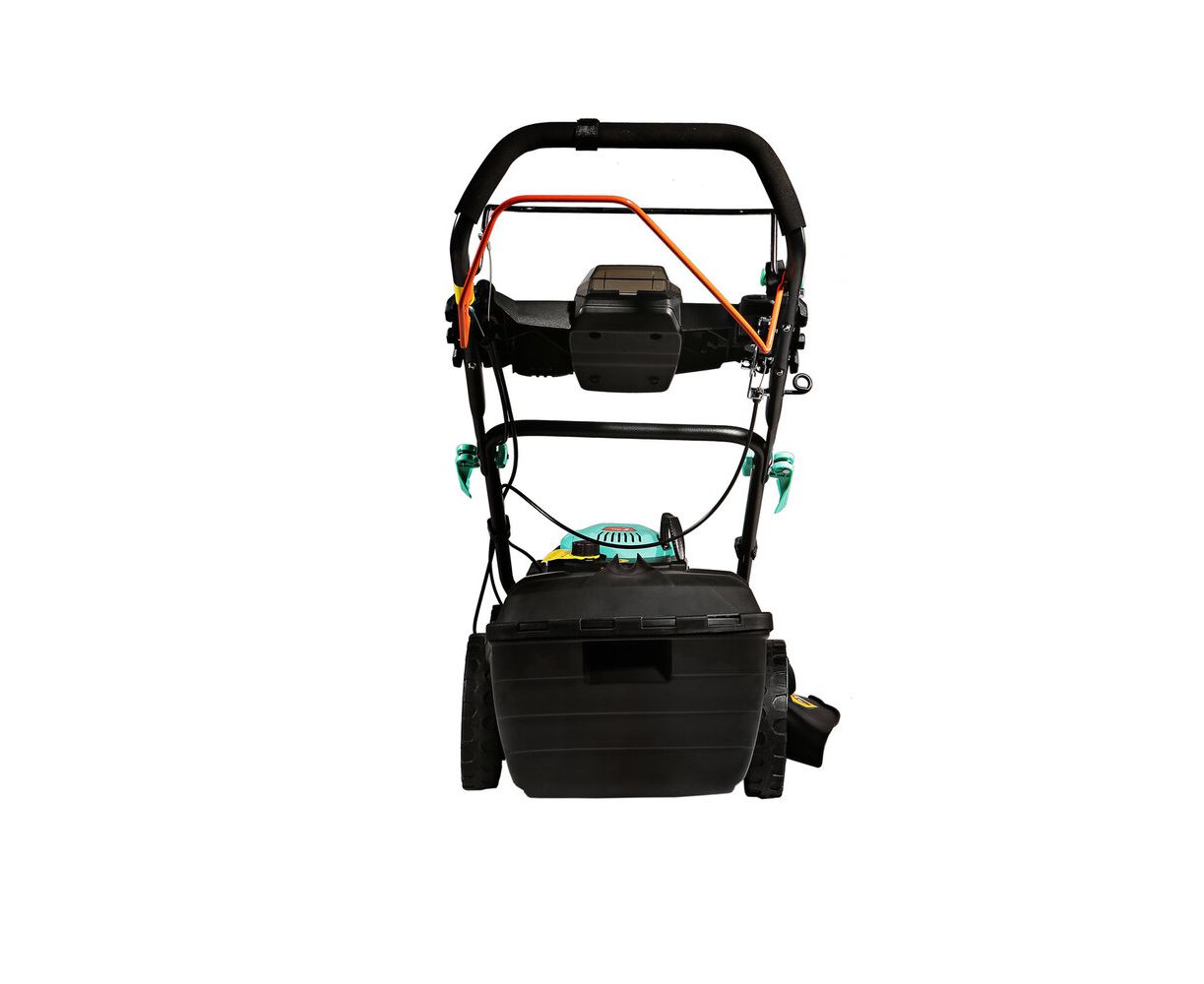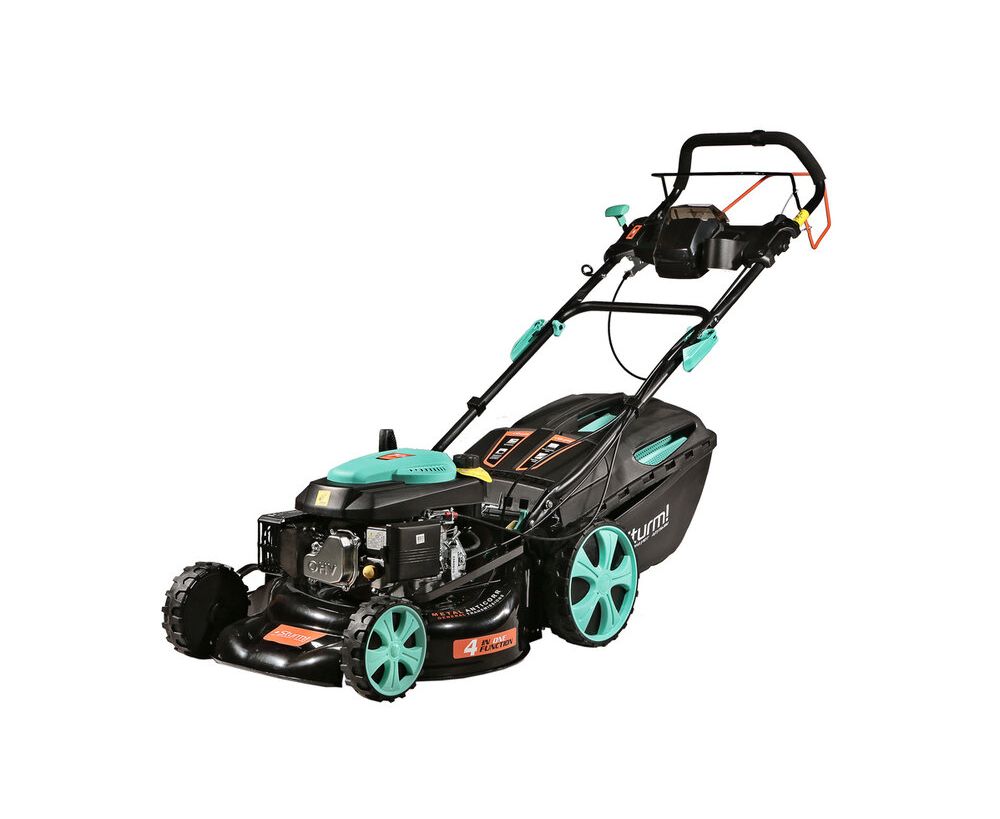Газонокосилка работает в четырех режимах: боковой выброс травы, задний выброс травы, режим мульчирования и сбор травы с травосборник