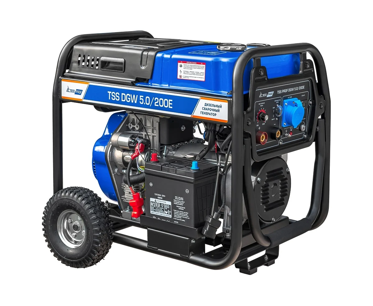 Профессиональная модель, разработана специально для проведения сварочных работ в тяжелых условиях эксплуатации. Номинальный сварочный ток составляет 200А при продолжительности включения 100%. Аппарат имеет расширенные сварочные настройки. Номинальный сварочный ток 200 Ампер. Кроме этого, генератор можно использовать как автономный источник электроснабжения. Можно освещать место сварки, подключать электроинструмент - дрель, шлифмашинку, болгарку и т.п. Мощность генератора 5 кВт.