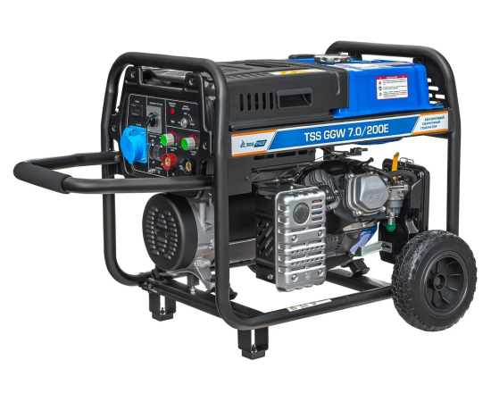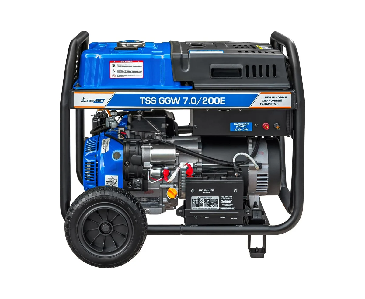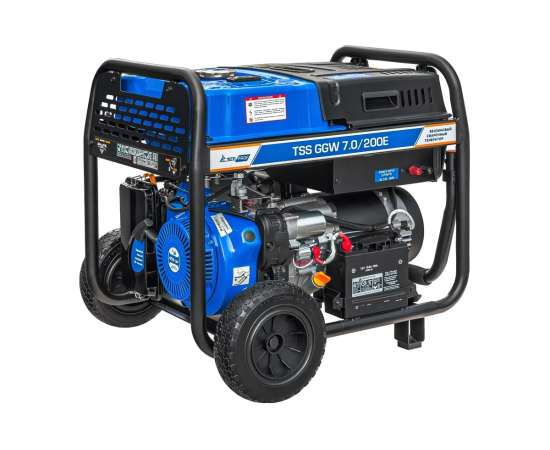 Это профессиональная модель, разработана специально для проведения сварочных работ в тяжёлых условиях эксплуатации. Номинальный сварочный ток составляет 200А при продолжительности включения 100%! Аппарат имеет расширенные сварочные настройки. Номинальный сварочный ток 200 Ампер. Кроме этого, генератор можно использовать как автономный источник электроснабжения. Можно освещать место сварки, подключать электроинструмент - дрель, шлифмашинку, болгарку и т.п. Мощность генератора 7 кВт.