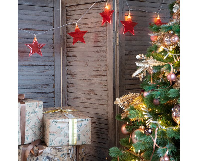 Гирлянда Neon-Night 304-002 Звездопад красная 10 LED 2,25 м прозрачный ПВХ теплый белый свет свечения 2 х АА (без батареек)