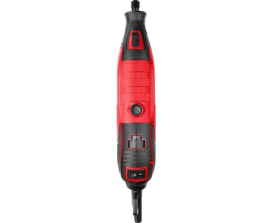 гравер электрический, гибкий вал, штатив телескопический, кронштейн штатива, цанга 3.2 мм, шарошка абразивная на шпильке цилиндрическая, шарошка абразивная на шпильке коническая, шарошка алмазная коническая, шарошка алмазная сферическая, шарошка по дереву цилиндрическая (борфреза), сверло, цилиндр шлифовальный 9 мм (5 шт.), цилиндр шлифовальный 12 мм (5 шт.), абразивный шлифовальный круг по металлу (6 шт.), отрезной абразивный круг (5 шт.), войлочный полировальный круг 12 мм (3 шт.), войлочный полировальный круг 25 мм (2 шт.), державка для шлифовальных цилиндров 9 мм, державка для шлифовальных цилиндров 12 мм, державка для войлочных кругов, державка для отрезных кругов, щетка-крацовка, диск отрезной алмазный, ключ гаечный, кейс, руководство по эксплуатации