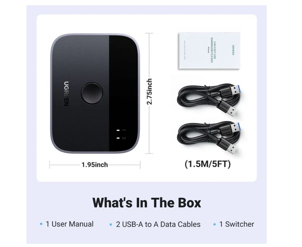 Хаб UGREEN CM757 (35313) USB 3.0 2x2 Sharing Switcher Black/Gray