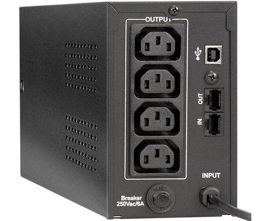 линейно-интерактивный, выходная мощность 850 ВА / 480 Вт, 4 компьютерных разъема IEC 320 C13, защита локальной сети, USB, время зарядки 6 ч