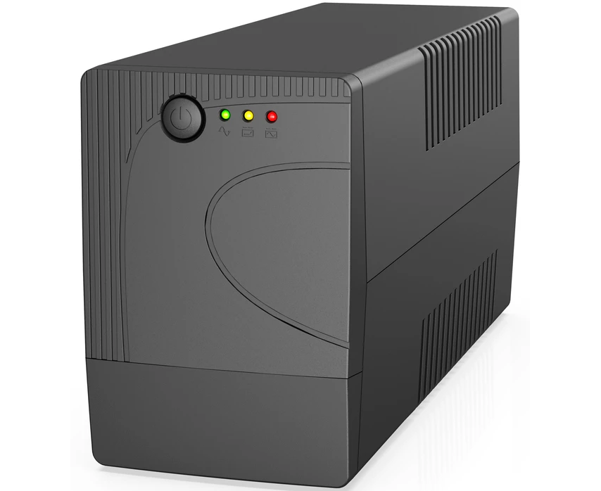 ИБП оснащен ступенчатой аппроксимацией синусоиды, что обеспечивает совместимость с большинством современных устройств, включая ПК, серверы и сетевые устройства. Широкий диапазон входного напряжения (165–295 В) позволяет стабилизировать питание даже в условиях сильных колебаний в сети, а выходная частота (49–61 Гц) адаптируется под текущие параметры, что делает устройство универсальным для использования в различных электросетях.