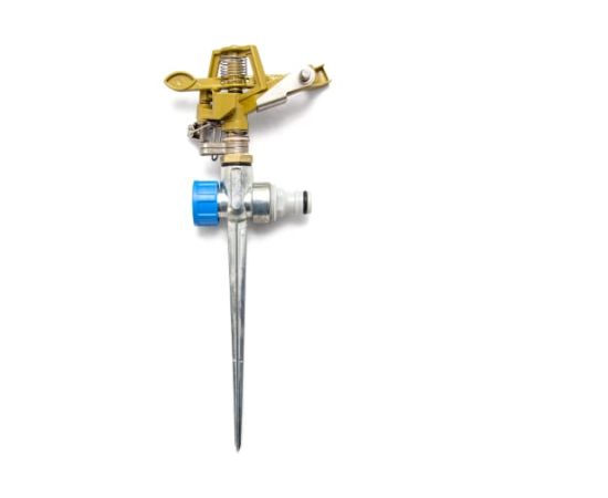 Латунный импульсный разбрызгиватель на металлической пике FRUT 403076 - устройство для создания брызг и тонкой струи жидкости для однородного орошения участка.