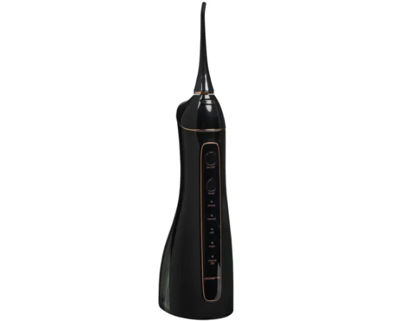 Ирригатор Polaris PWF 0201 представлен в черном корпусе с контейнером на 220 мл. Устройство оснащено пятью режимами давления воды с предельным значением 620 кПа. Импульсная технология подает струю с 1400-1700 пульсаций в минуту.