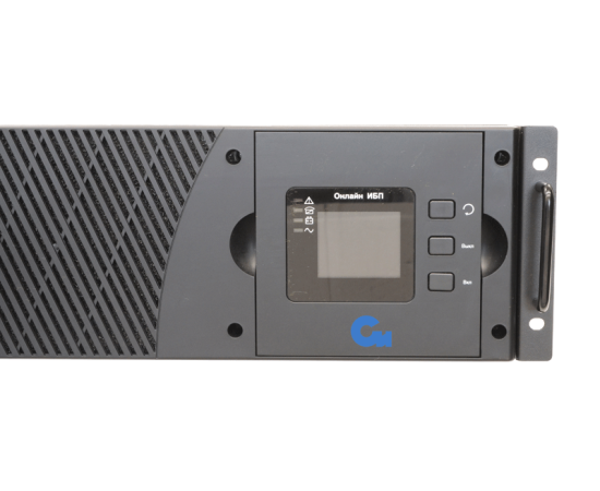 Онлайн ИБП СИПБ10КД.9-11/БПС двойного преобразования полной мощностью 10 кВА для установки в 19'' стойку или на пол с раздельным вводом байпас и цветным ЖК-дисплеем. Выходной коэффициент мощности 0,9. Параллельная работа до четырех ИБП. Два внутренних слота для установки карт управления. Аккумуляторы во внешних батарейных блоках для удобства монтажа и замены.