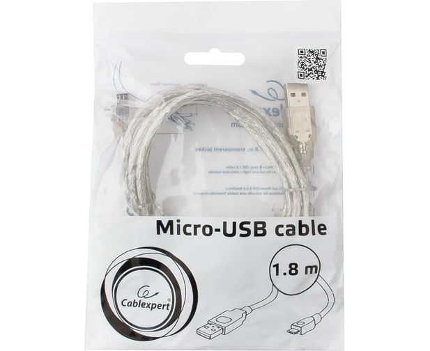 Кабель Cablexpert CCP-mUSB2-AMBM-6-TR USB 2.0 Pro, AM/microBM, 1,8м, экран, феррит.кольцо, прозрачны