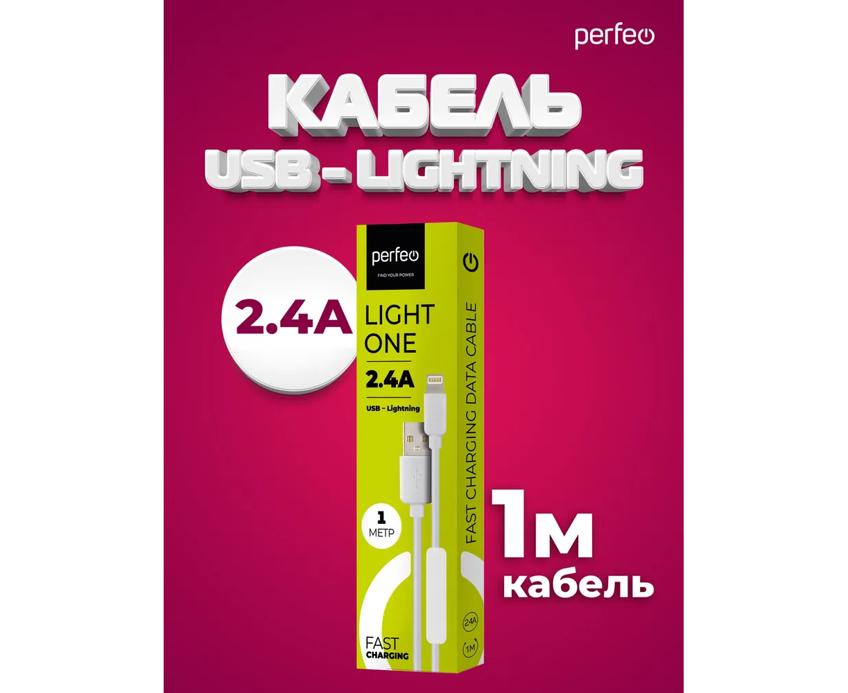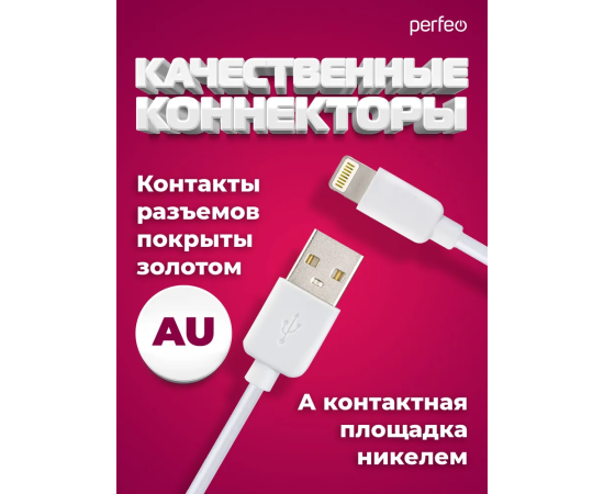 Кабель для iPhone PERFEO I4604 USB-8 PIN Lightning белый, 1м, бокс
