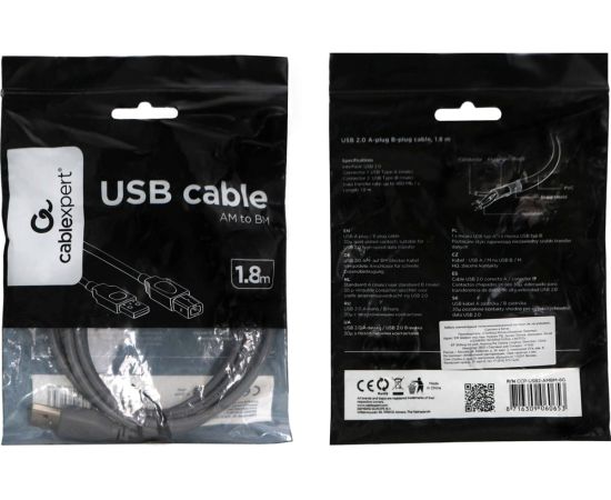 Технические характеристики Cablexpert USB 2.0 Pro AM/BM, 1.8м, экран, серый CCP-USB2-AMBM-6G