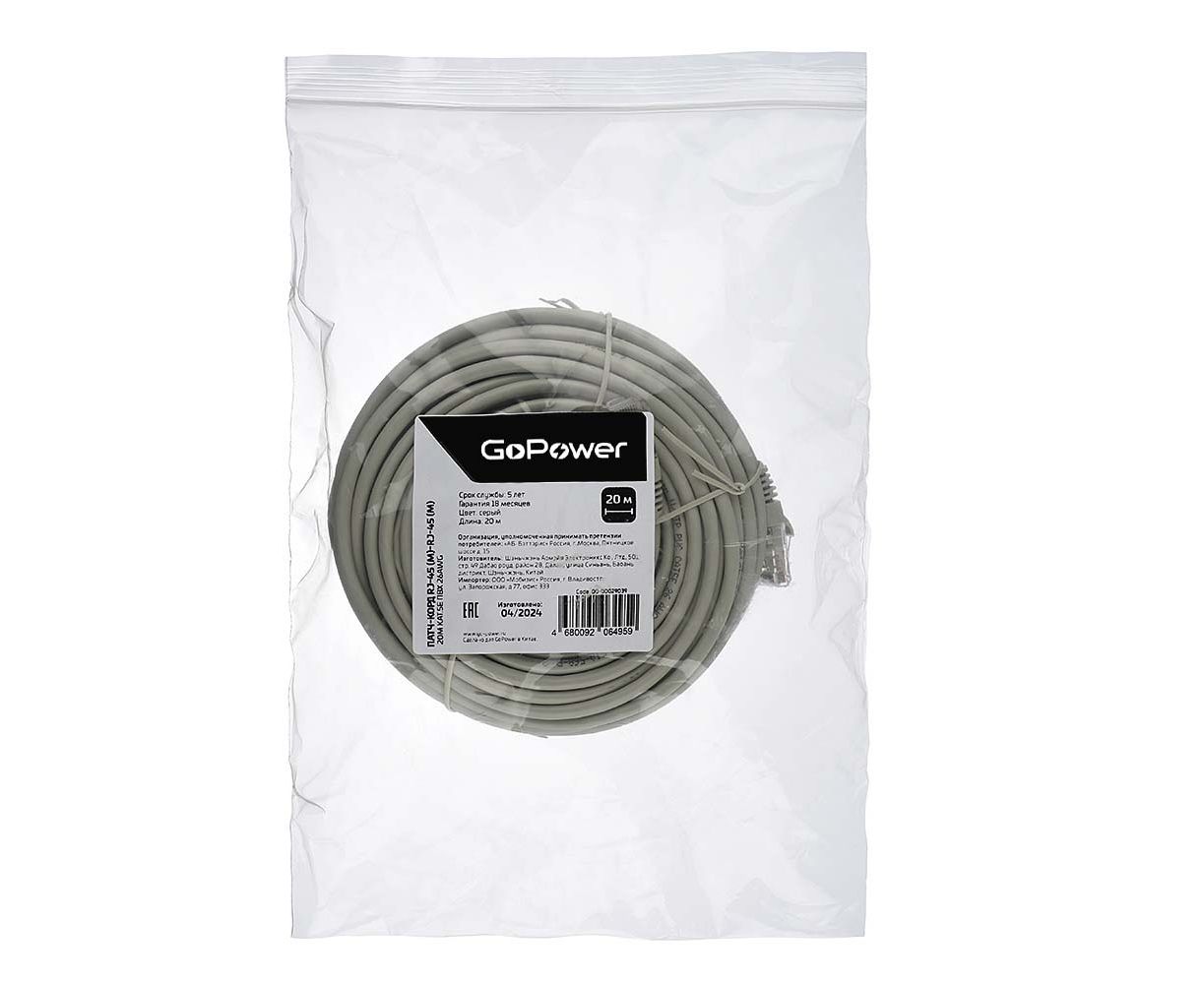 Кабель GOPOWER 00-00029039 Patch RJ-45(M)/RJ-45(M) 20M Grey
