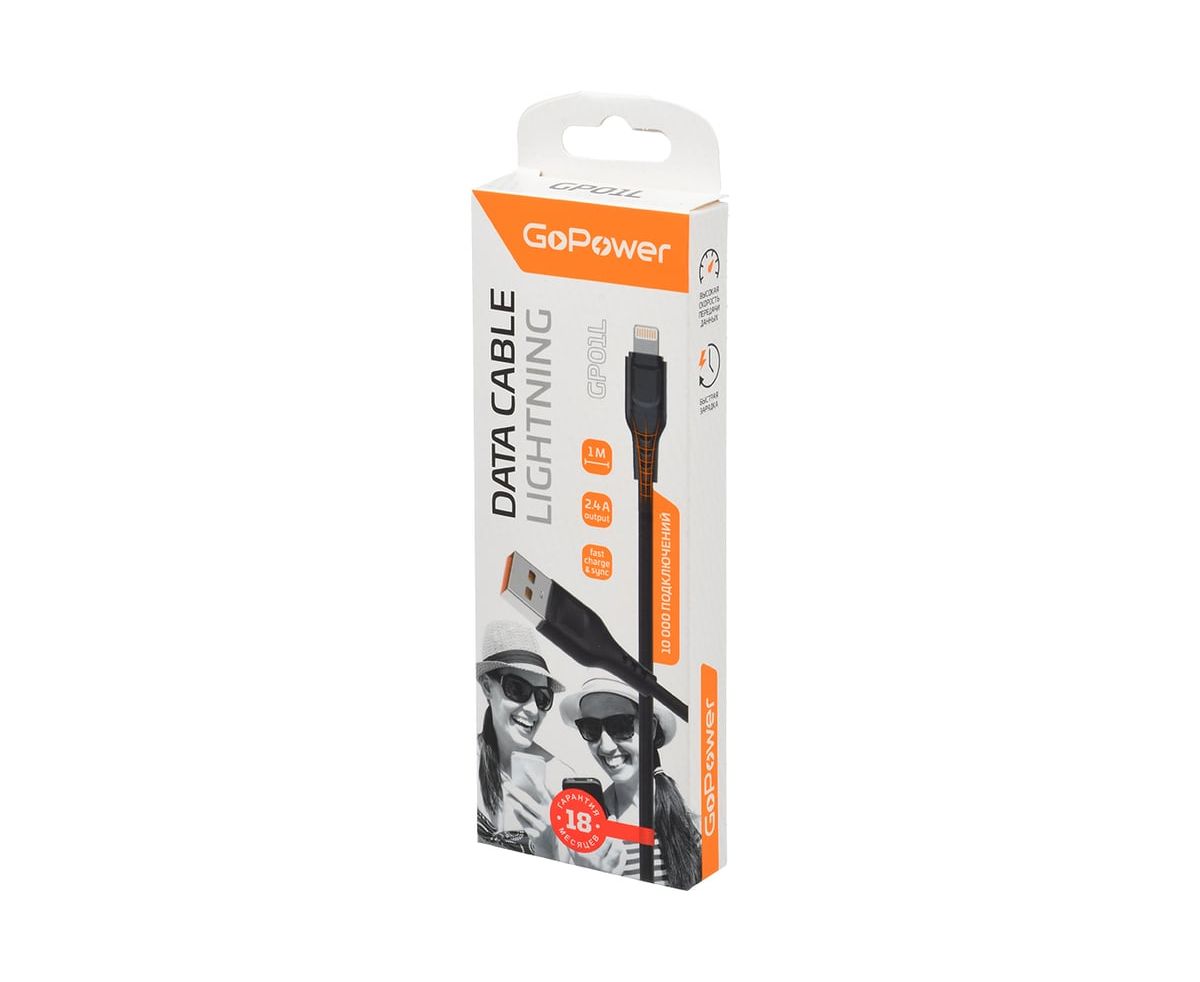 Кабель GoPower GP01L 00-00018568 USB m-Lightning m 1.0м 2.4A ПВХ черный 1/800