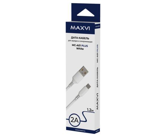Кабель Maxvi MC-A01 plus white USB-A-microUSB, 2A