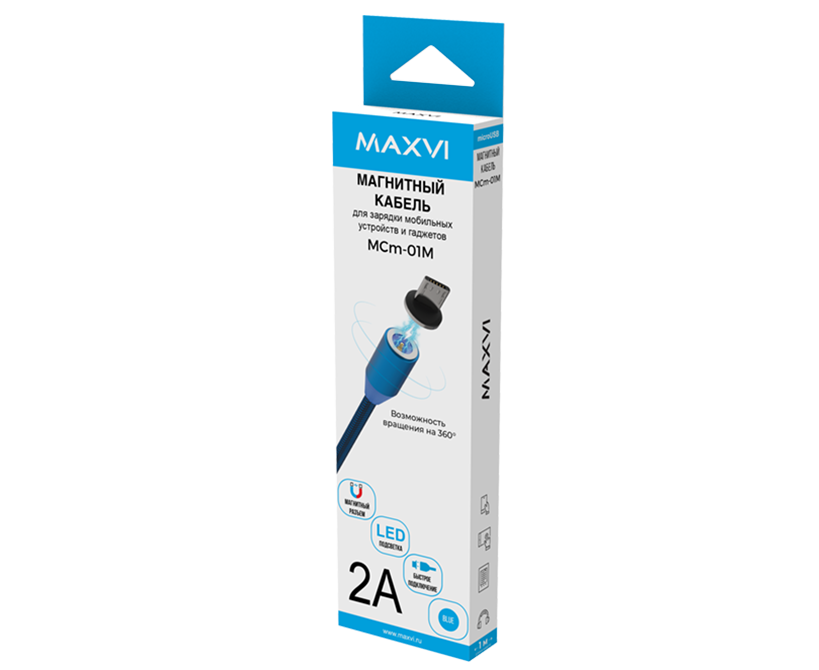 Кабель Maxvi MCm-01M blue USB-A-microUSB, 2A