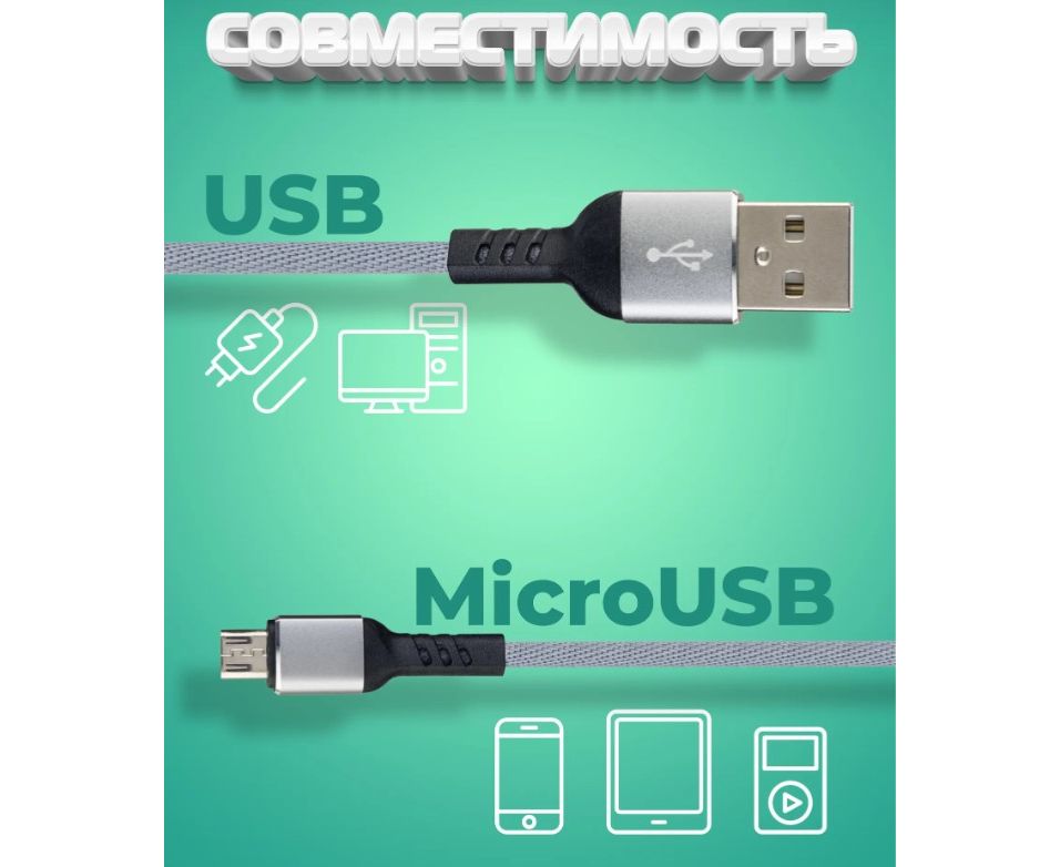 Кабель PERFEO U4809 USB2.0 A вилка - Micro USB вилка, серый, длина 2м, бокс