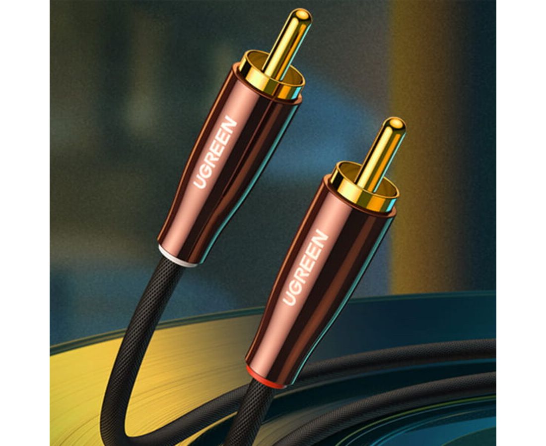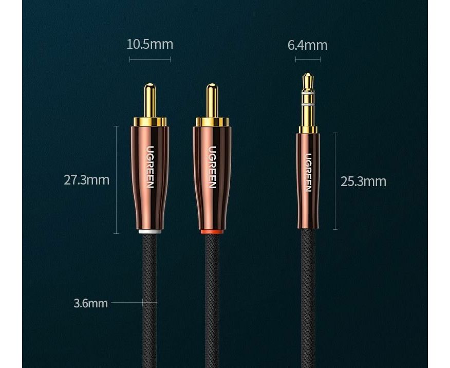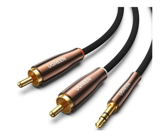 Кабель UGREEN AV170 80845 3.5mm Male to 2*RCA Copper Case Braided Aux Cable 1m Black/Dark Copper