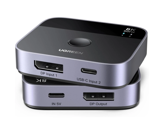 KVM-переключатель UGREEN AW701 (65878) 2 in 1 8K 60Hz DisplayPort USB-C Switcher Black