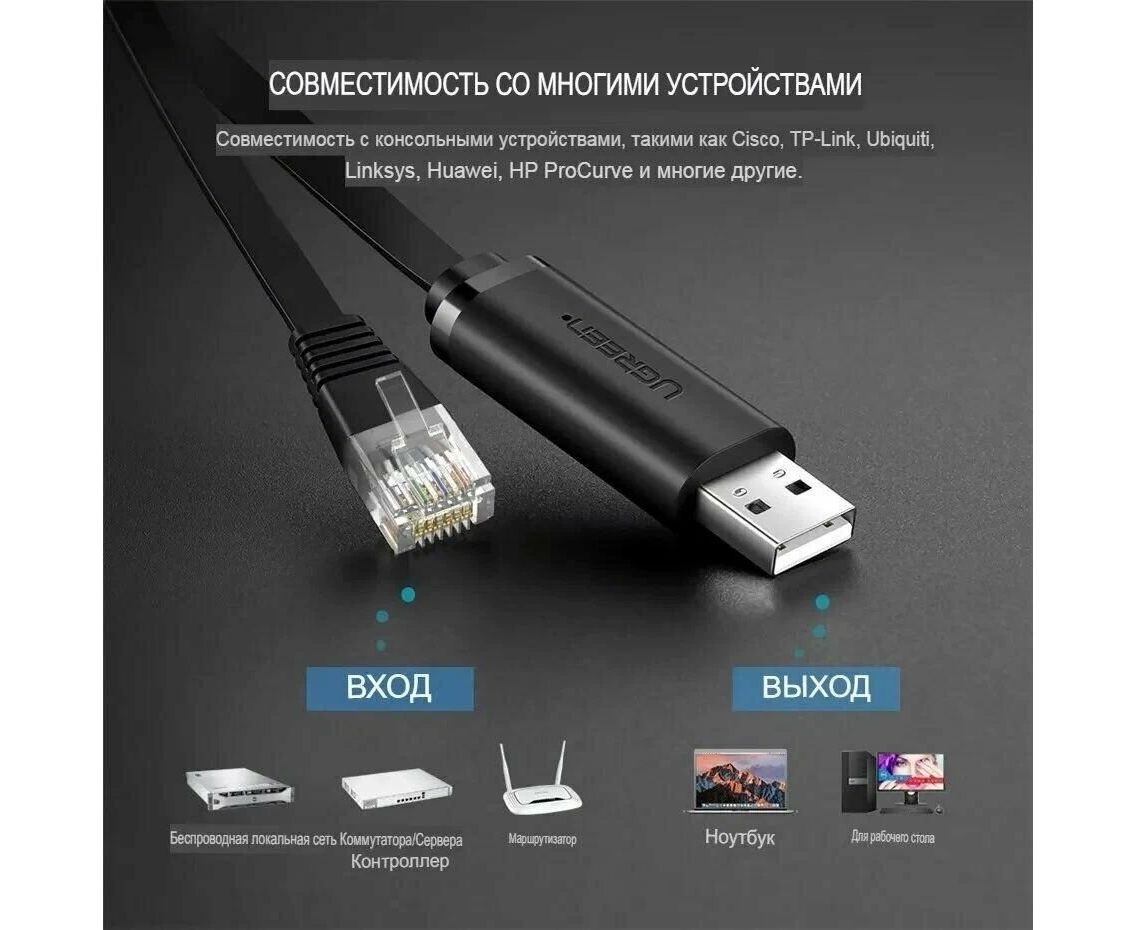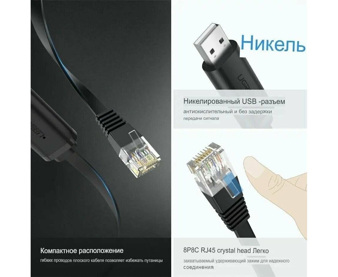 Кабель UGREEN CM204 50773 USB-A to RJ45 Console Cable 1.5m Black