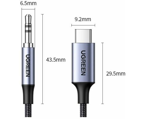 Кабель UGREEN CM450 (65102) USB-C Male to 3.5mm Male Audio Cable Adapter 3m Black