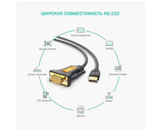 Кабель UGREEN CR104 20222 USB 2.0 A To DB9 RS-232 Male Adapter Cable 2m Grey