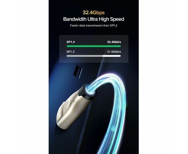 Кабель UGREEN DP112 60842 1.4 DP M/M Round Cable Zinc Alloy Shell with Braided 1m Black