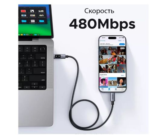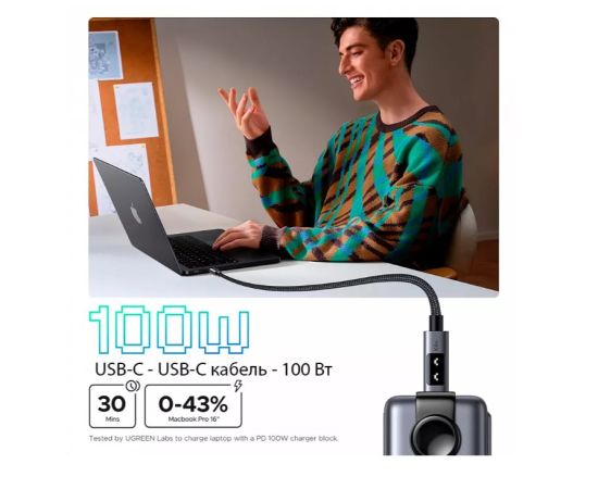 Кабель UGREEN L509 (35501) UNO Type-C 2.0 Male To Type-C 2.0 Male Robot 5A Data Cable 1m Black/Gray