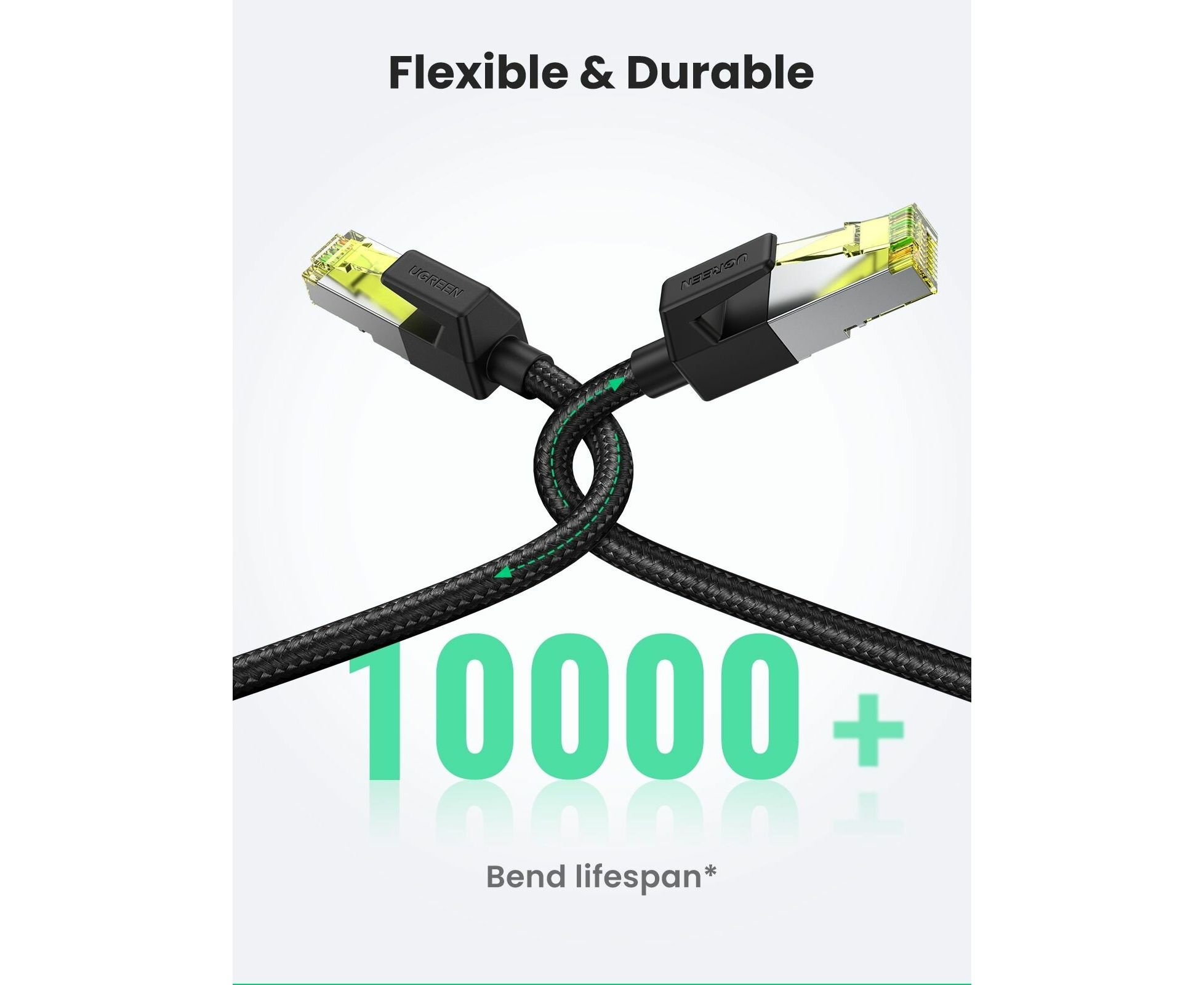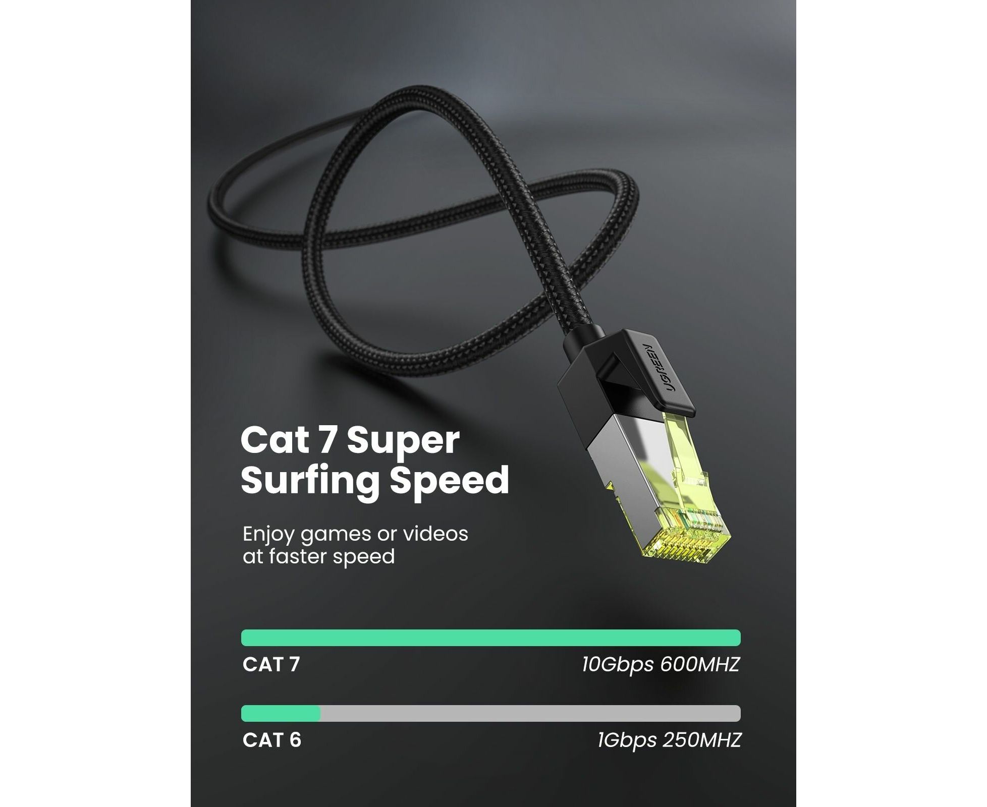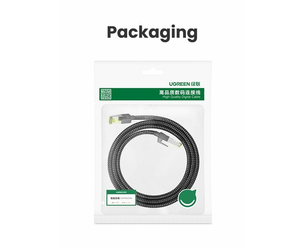 Кабель UGREEN NW150 (80420) CAT7 Shielded Round Cable with Braided Modular Plugs, 0,5м черный