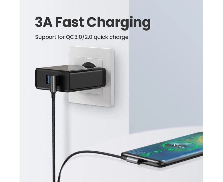 Кабель UGREEN US176 70875 Right Angle USB-A to USB-C Cable 3m Space Gray