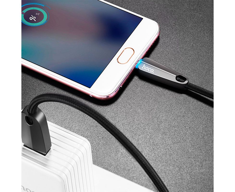 Кабель для зарядки и передачи данных U35 Space shuttle smart power off для устройств с интерфейсом Micro USB, 1,2 м, с мягкой нейлоновой оплеткой, соединения из цинкового сплава