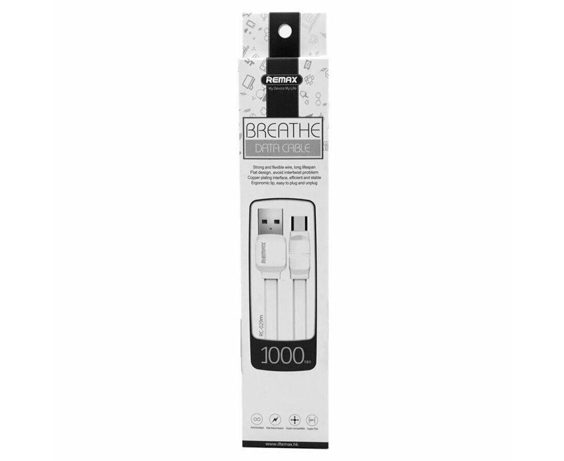 Кабель USB REMAX RC-029m Breathe USB-MicroUSB, 2.1А, 1м белый