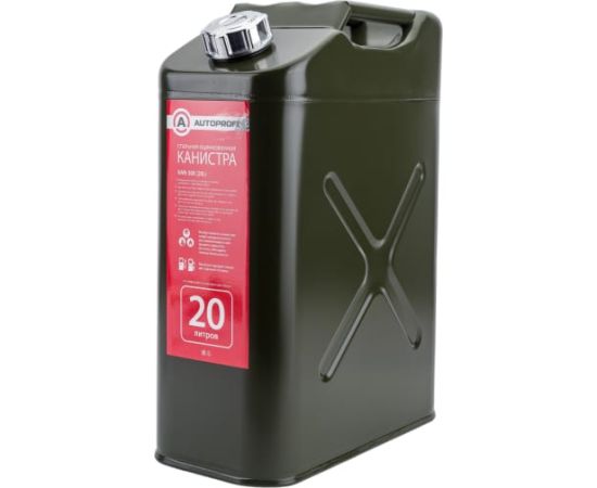 Канистра стальная AUTOPROFI KAN-300 20L, вертикальная, оцинкованная, горловина с навинчив. крышкой, перепускной клапан, лейка, 20 литров, 1 4
